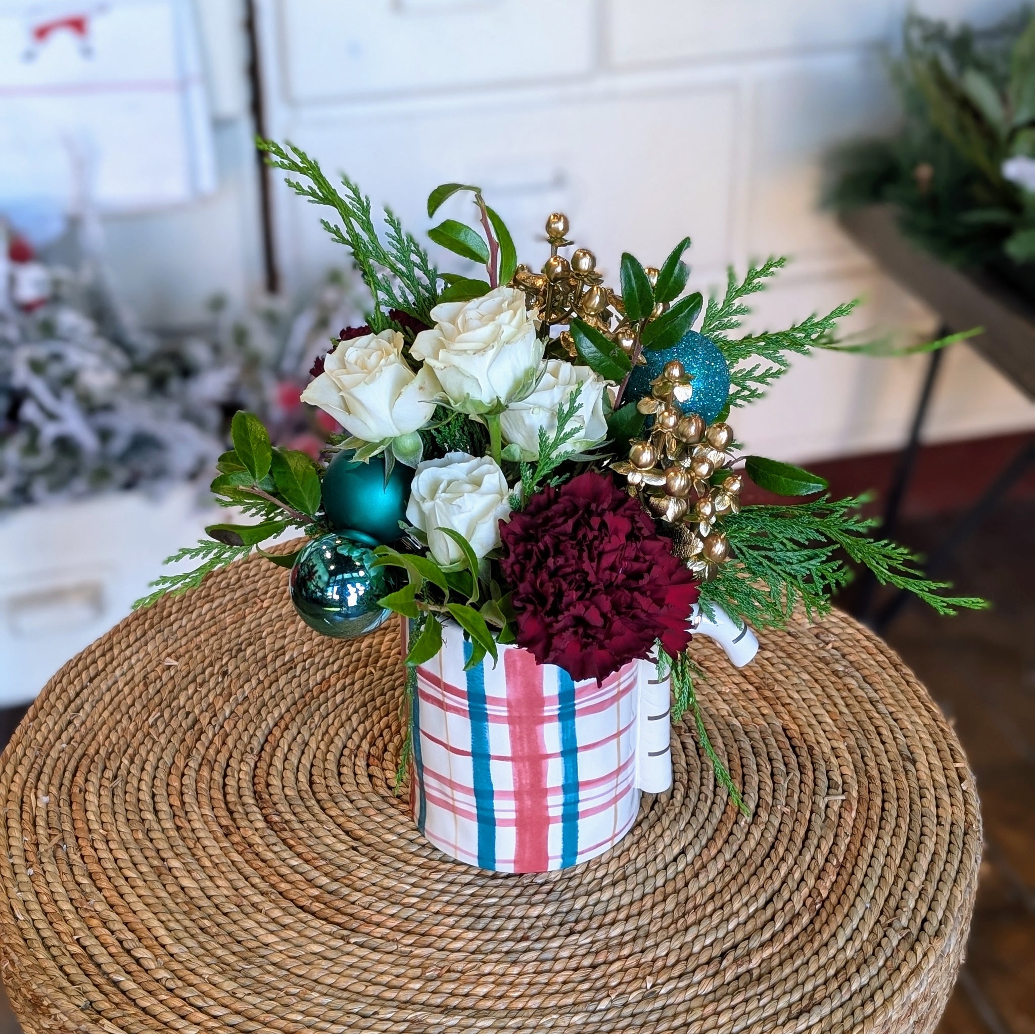 This design may include poms, spray roses, berries, carnations and more. We use only the freshest flowers so product or color may vary according to availability. Substitutions will be to value and retain the look and feel of the bouquet.